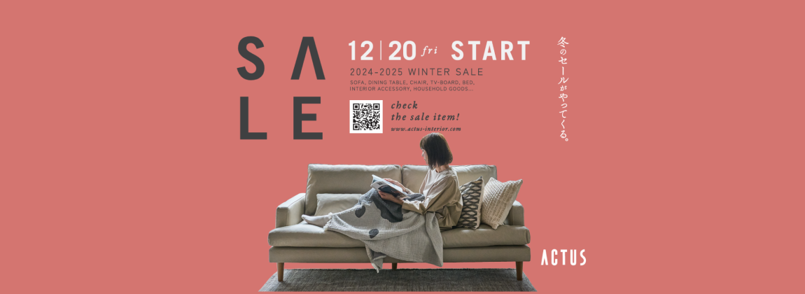 ACTUS WINTER SALE 2024-202512/20 (FRI) AM10:00~ START!!ソファやダイニングテーブル食器やタオル、バスケットなどのインテリア雑貨まで様々なアイテムが揃います。期間中特別価格のアイテムや展示品1点限りのアイテムが盛りだくさん!!さらに今年もセ…